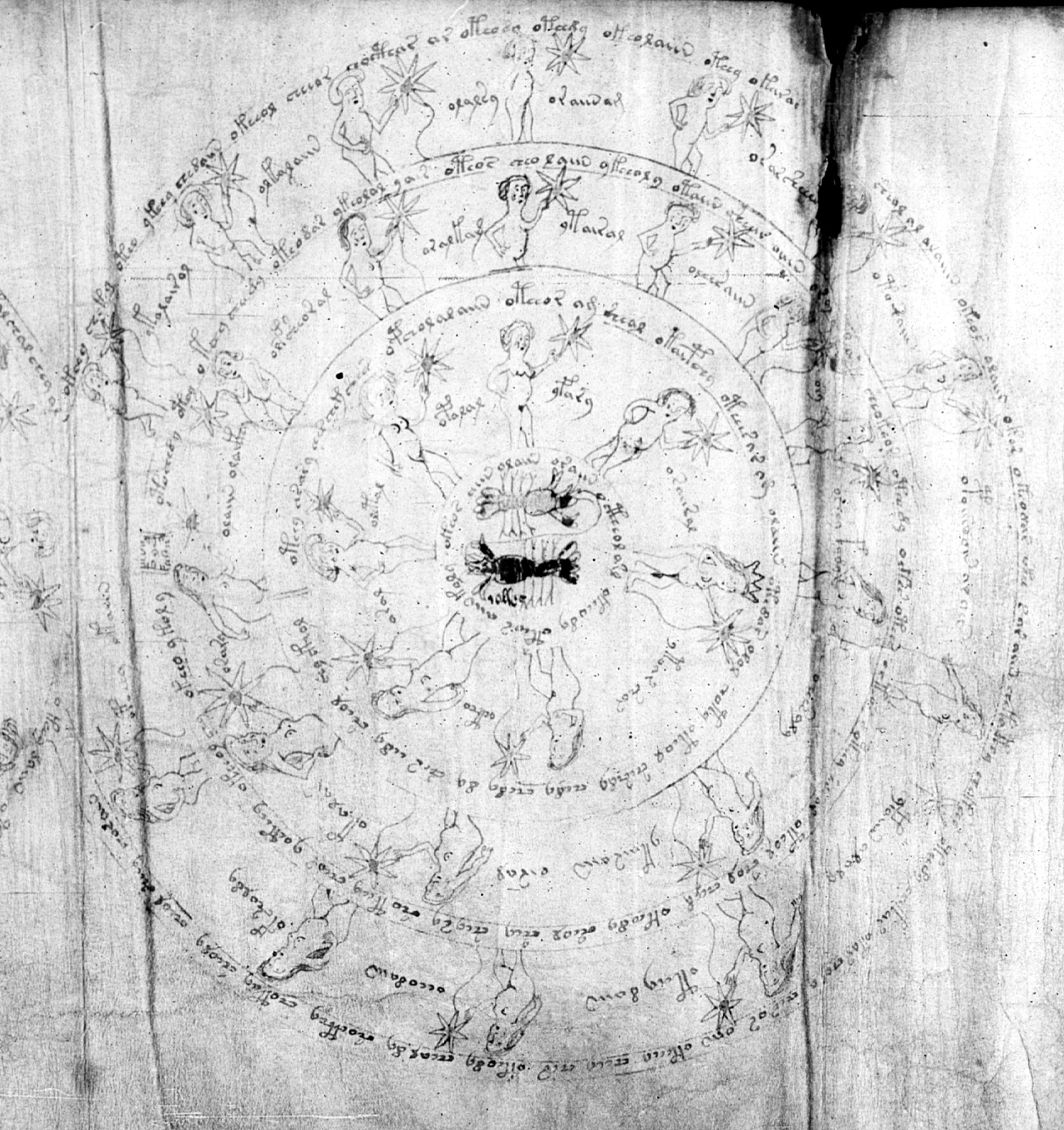 bottom one is dark and facing West. Below them is a non-Voynichese