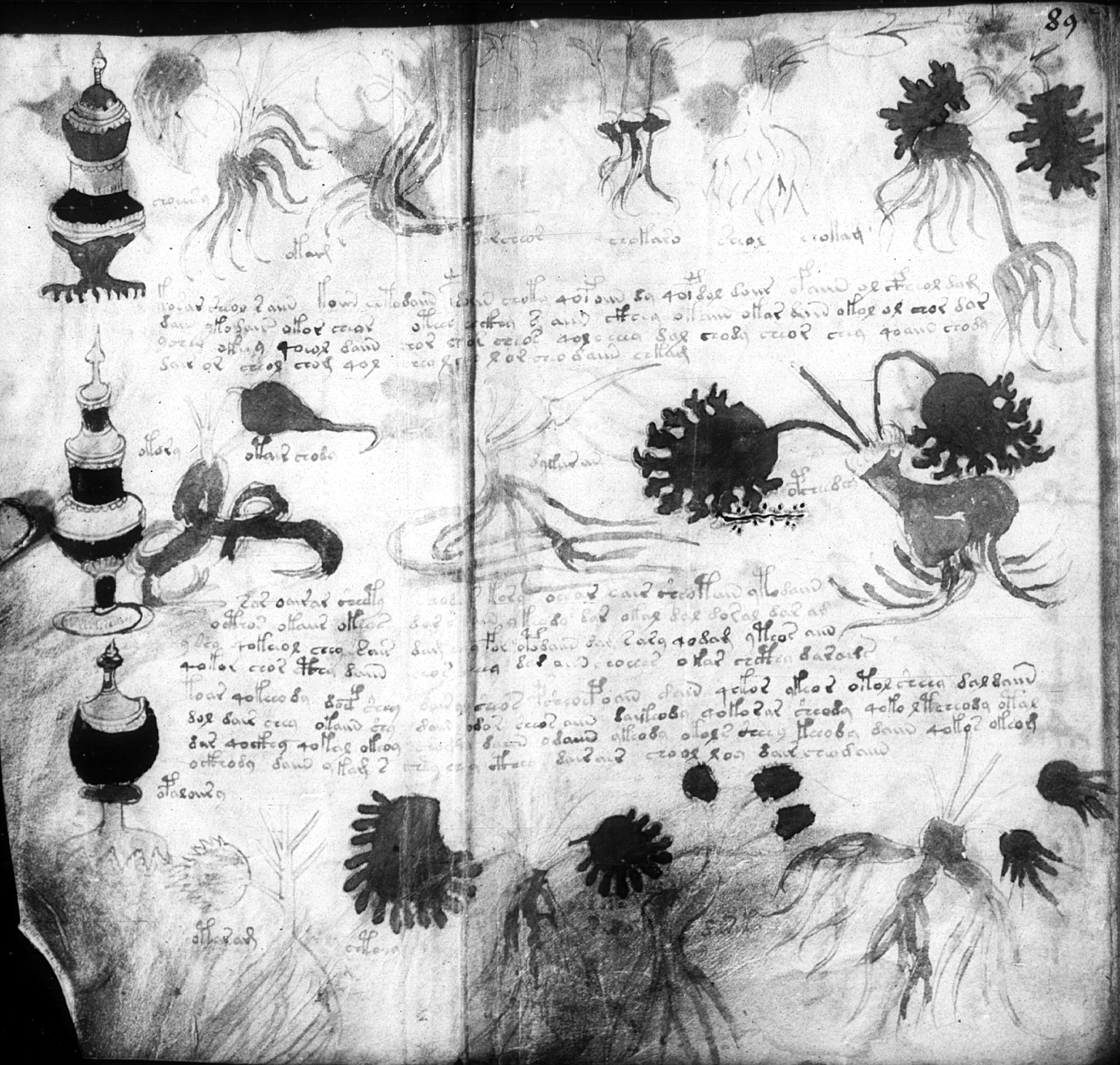 f89v2) of a six-panel fold-out. Panel f89v3 has half-width. The